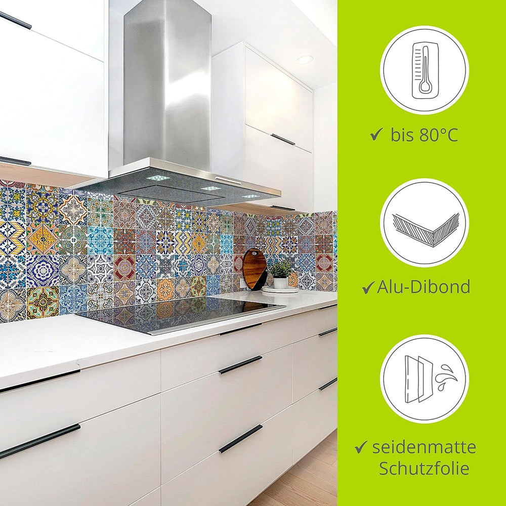ARTland Spritzschutz Küche aus Alu für Herd Spüle 90x55 cm (BxH) Küchenrückwand mit Motiv Mosaik Fli