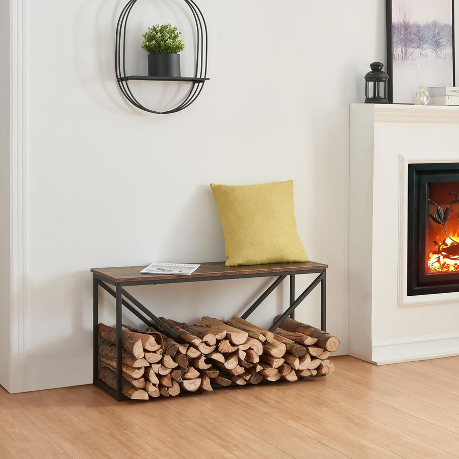 [en.casa] Kaminholzregal Vaasa Feuerholzständer mit Sitzfläche Holzlager aus Stahl Brennholzregal V-