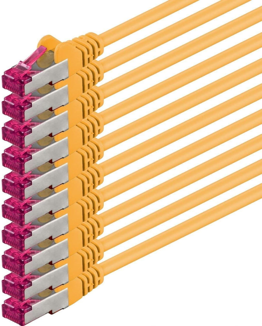 1aTTack.de 10m - gelb - 10 Stück - Netzwerkkabel CAT6a (10Gb/s) S-FTP CAT 6a Lankabel - GHMT zertifi