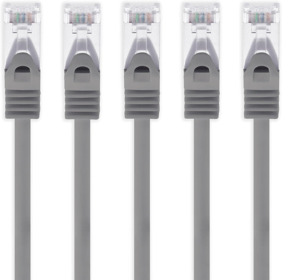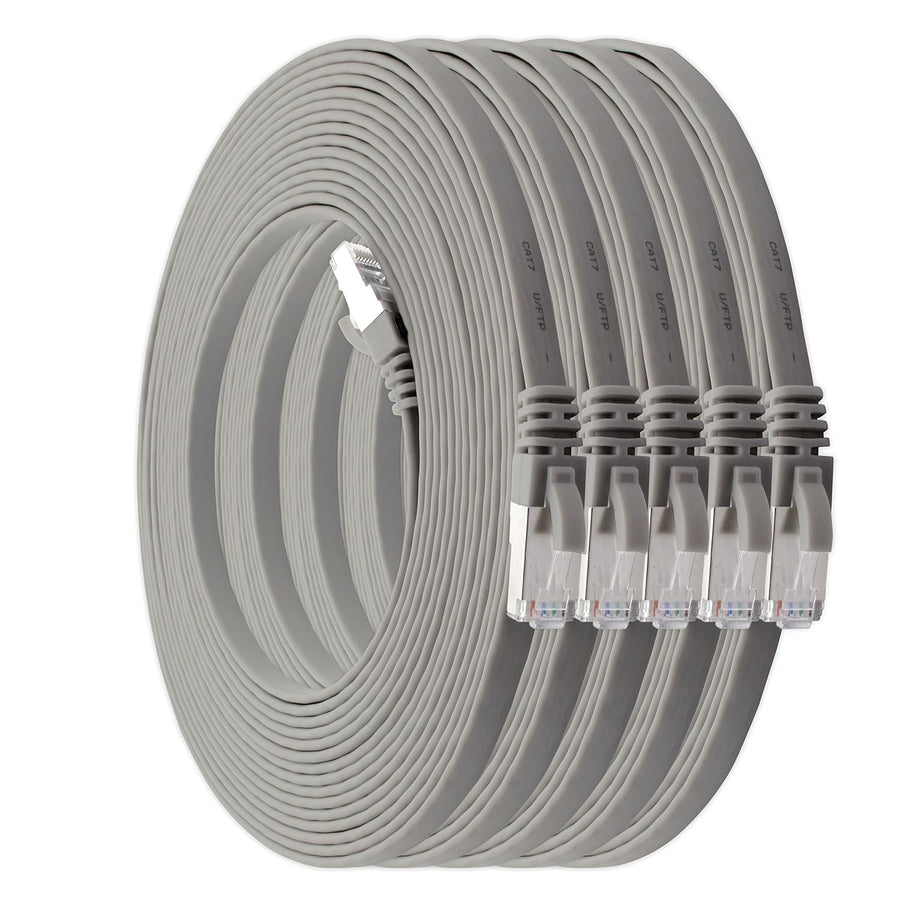 1aTTack.de 10m - grau - 5 Stück Cat7 Flachkabel Netzwerkkabel Cat 7 Rohkabel Gigabit Lan (10Gbit/s)