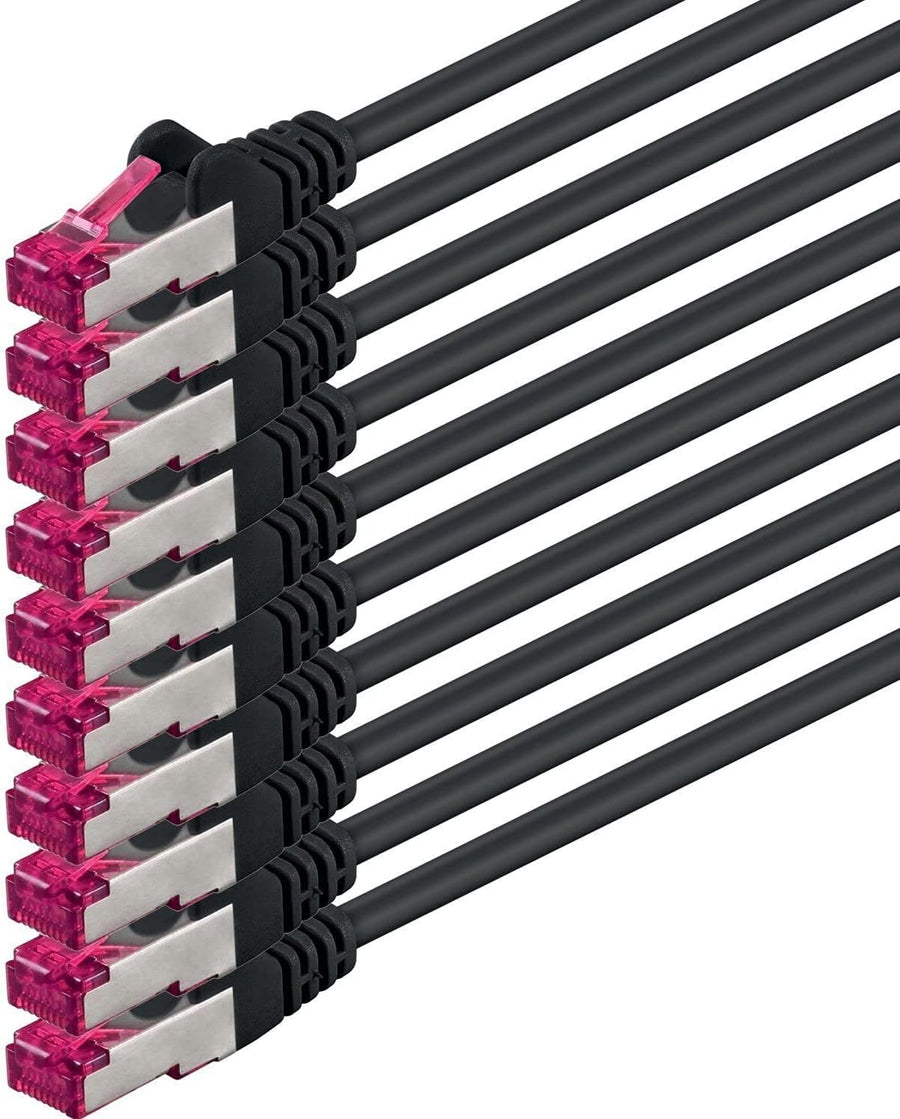1aTTack.de 10m - schwarz - 10 Stück - Netzwerkkabel CAT6a (10Gb/s) S-FTP CAT 6a Lankabel - GHMT zert