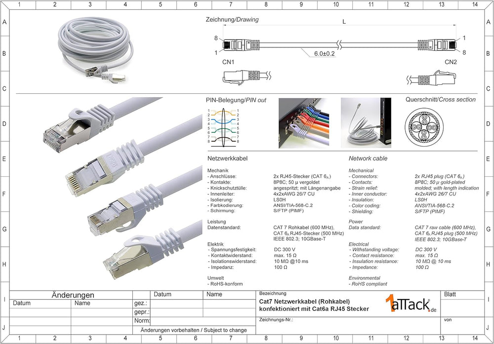 1aTTack.de 10m - grau - 5 Stück CAT.7 Netzwerkkabel Patchkabel SFTP PIMF LSZH Gigabit Lan Kabel 10Gb