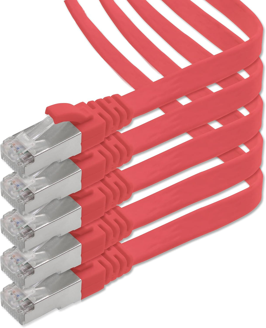 1aTTack.de 10m - rot - 5 Stück CAT.7 Gigabit Ethernet LAN Flachband Flachbandkabel (RJ45) Netzwerkka