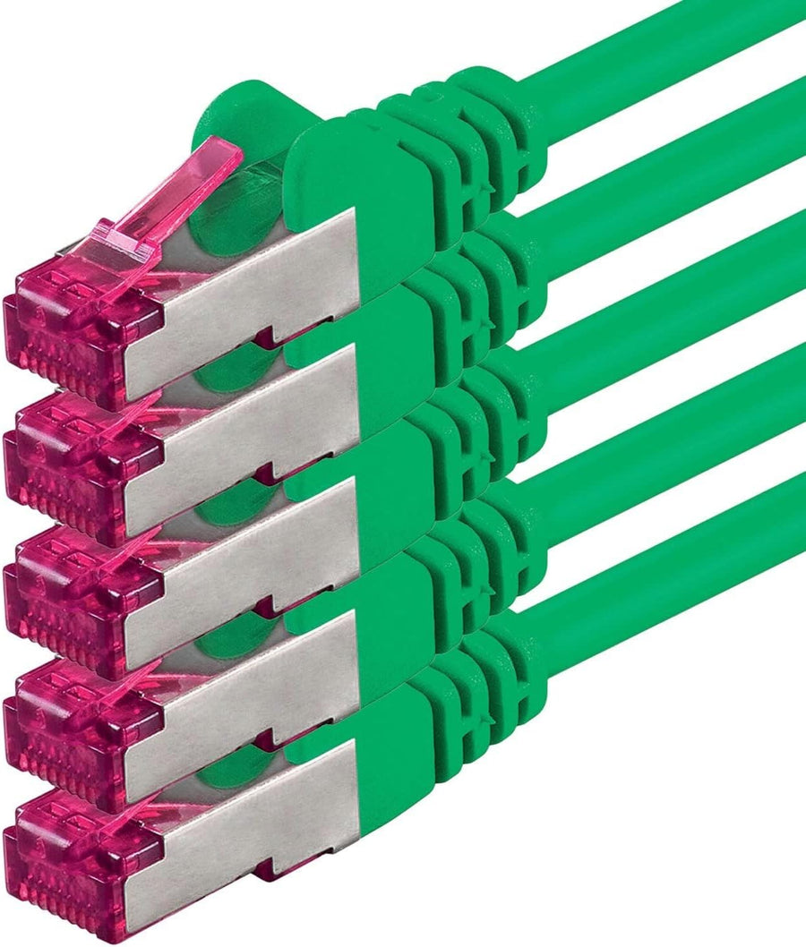 1aTTack.de 10m - grün - 5 Stück Cat7 Netzwerkkabel SFTP Patchkabel Lankabel Rohkabel 10GB/s - 500 Mh