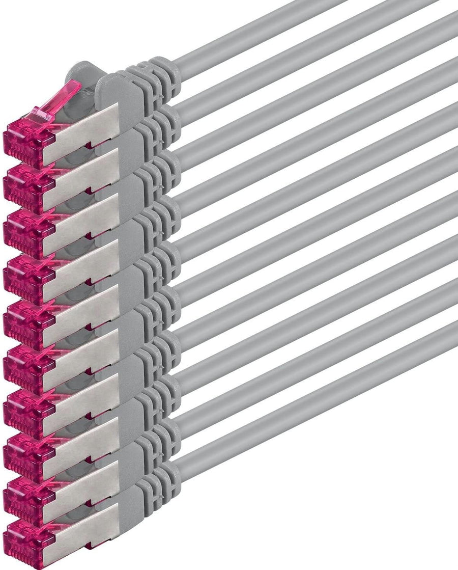 1aTTack.de 10x 10m - Cat 6 Netzwerk-Kabel Patch-Kabel Cat6 RJ45 SFTP - Grau 10m grau - 10 Stück, 10m
