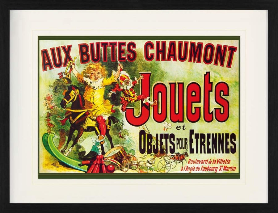 1art1 Vintage Poster Aux Buttes Chaumont, Jouets Et Objets Pour Étrennes, Jules Cheret, 1885 Gerahmt