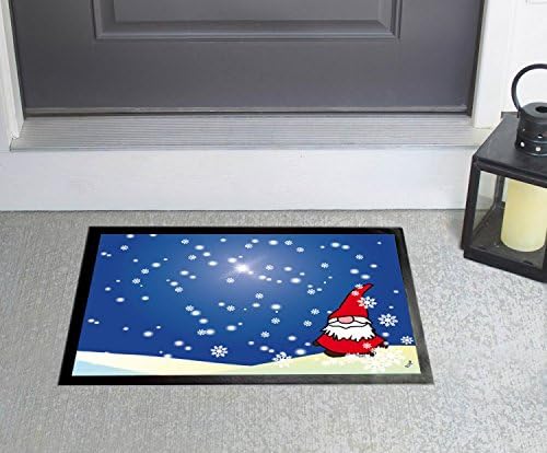 1art1 Weihnachten Kleiner Wichtel In Verschneiter Winternacht Fussmatte Dekomatte Innenbereich | Des