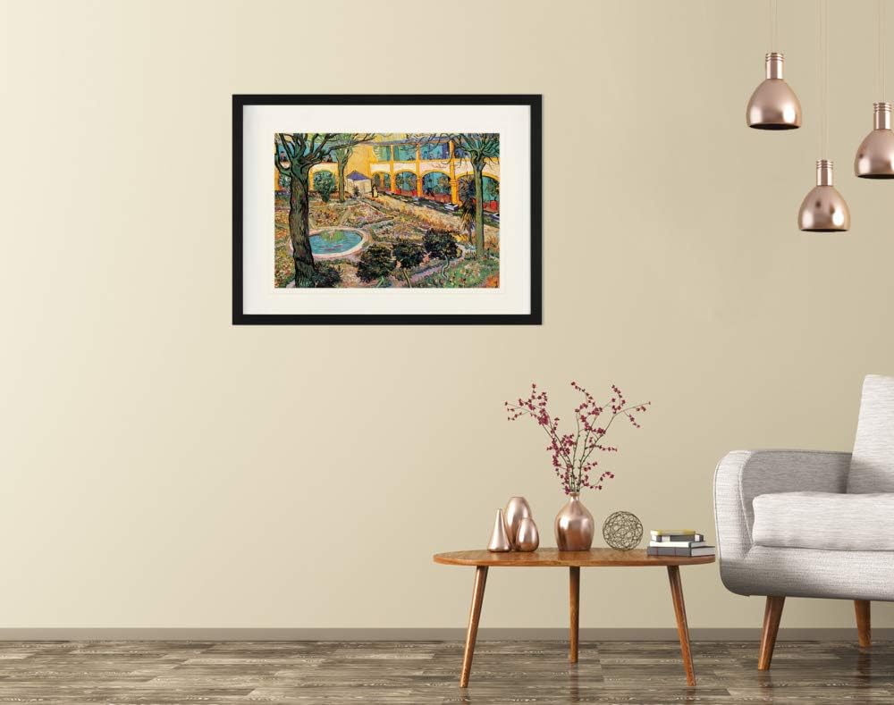 1art1 Vincent Van Gogh Poster Der Hof des Hospitals In Arles, 1889 Gerahmtes Bild Mit Edlem Passepar