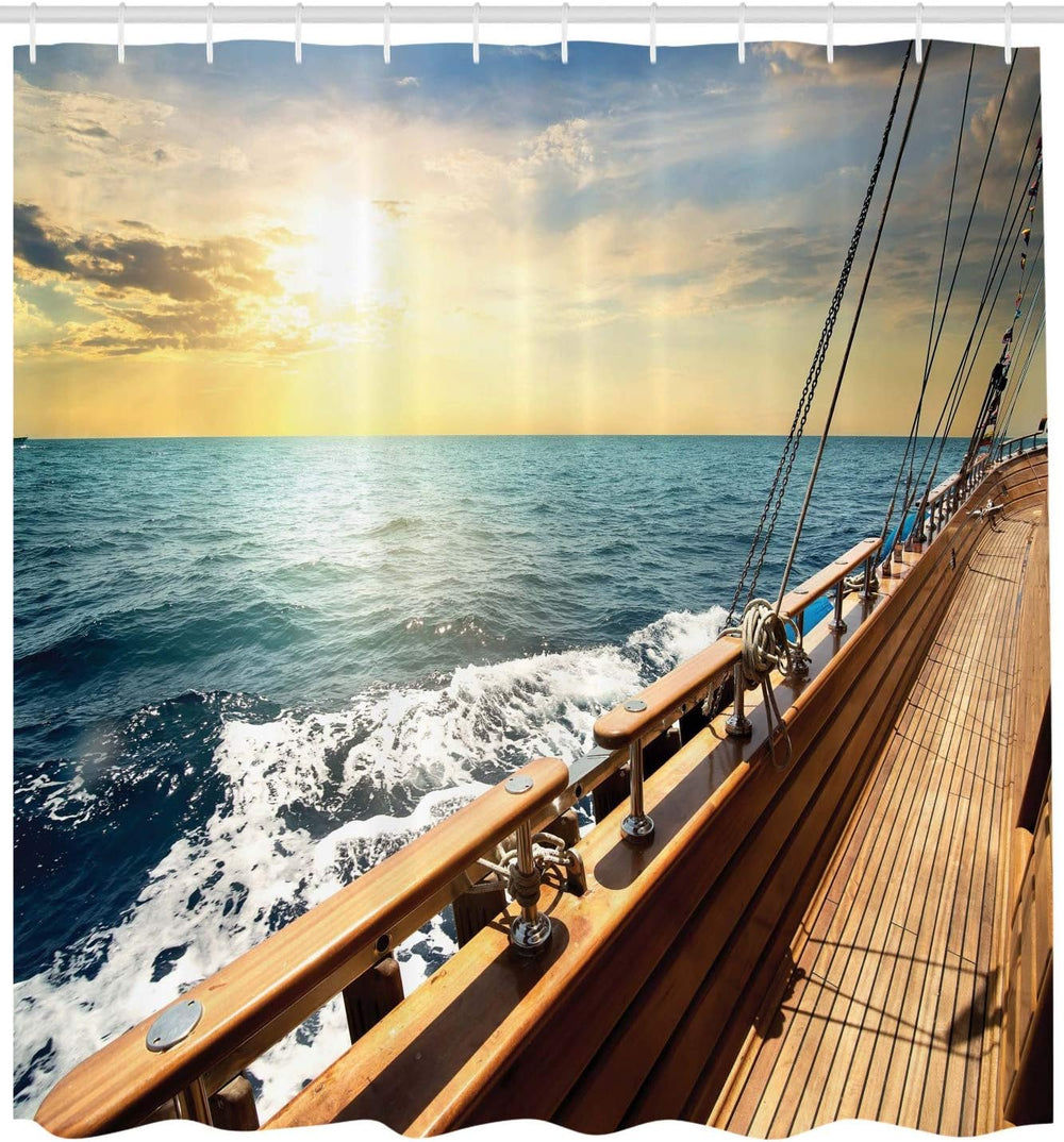 ABAKUHAUS Nautisch Duschvorhang, Segelboot-Sonnenuntergang Meer, Stoffliches Gewebe Badezimmerdekora