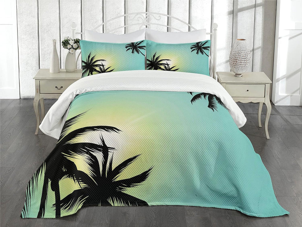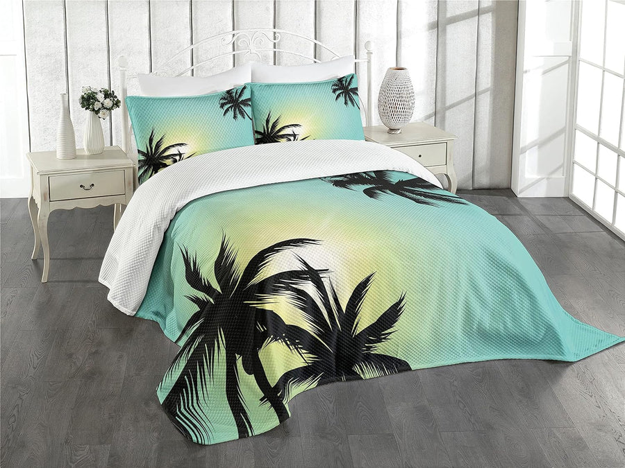 ABAKUHAUS Modern Tagesdecke Set, Hawaiian Miami Beach Sun, Set mit Kissenbezügen Waschbar, für Doppe