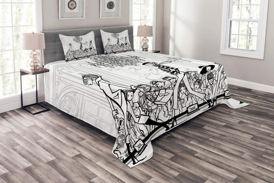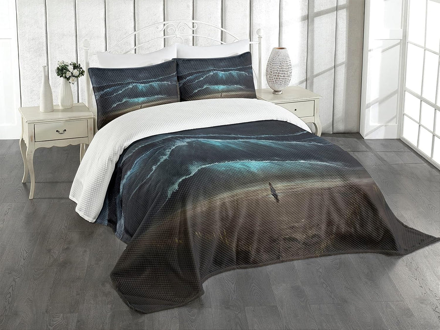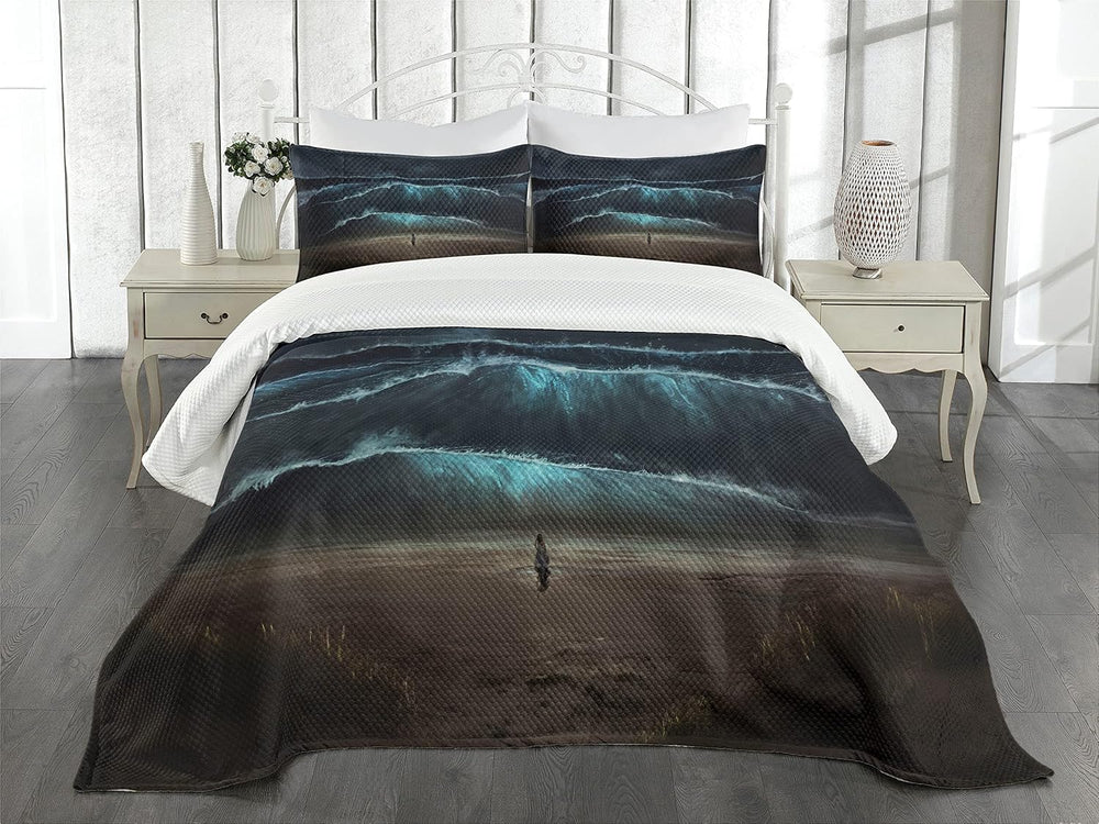 ABAKUHAUS Nachtozean Tagesdecke Set, Gothic-Welle Allein Frau, Set mit Kissenbezügen Waschbar, für D