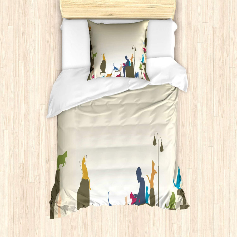 ABAKUHAUS Mehrfarbig Bettbezug Set für Einzelbetten, Crazy Cat Lady Startseite, Milbensicher Allergi