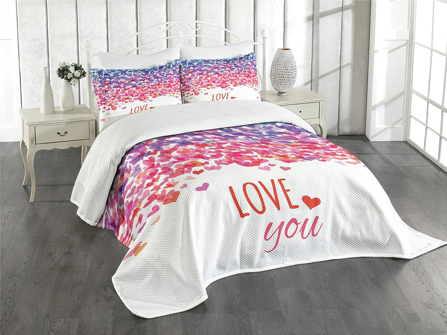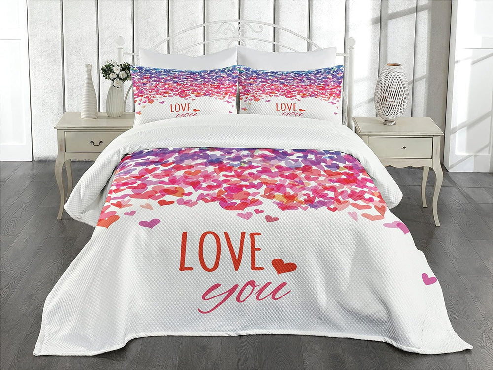 ABAKUHAUS Liebe Tagesdecke Set, Herz-Liebe-Frühling, Set mit Kissenbezügen Moderne Designs, für Dopp