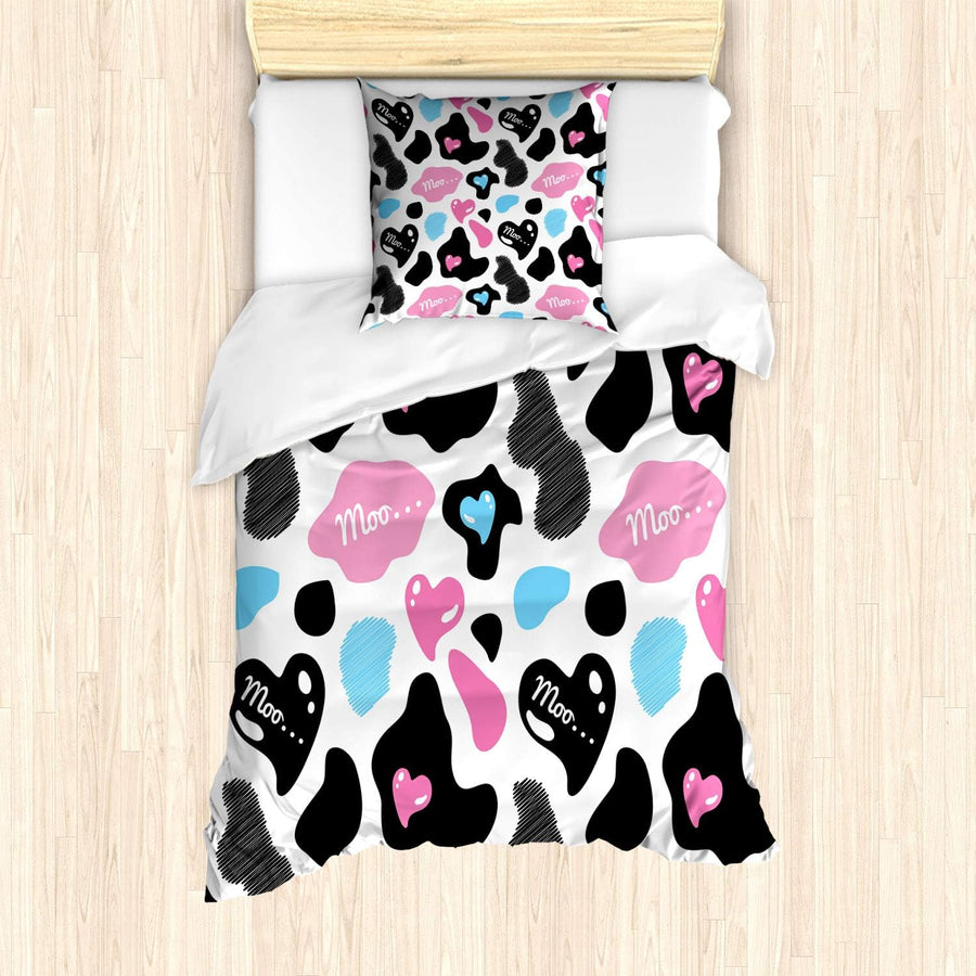 ABAKUHAUS Kuh-Druck Bettbezug Set, Kuhfell Herz, Milbensicher Allergiker geeignet mit Kissenbezügen,