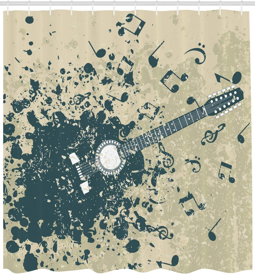 ABAKUHAUS Musik Duschvorhang, Akustikgitarre Hinweise, Stoffliches Gewebe Badezimmerdekorationsset m