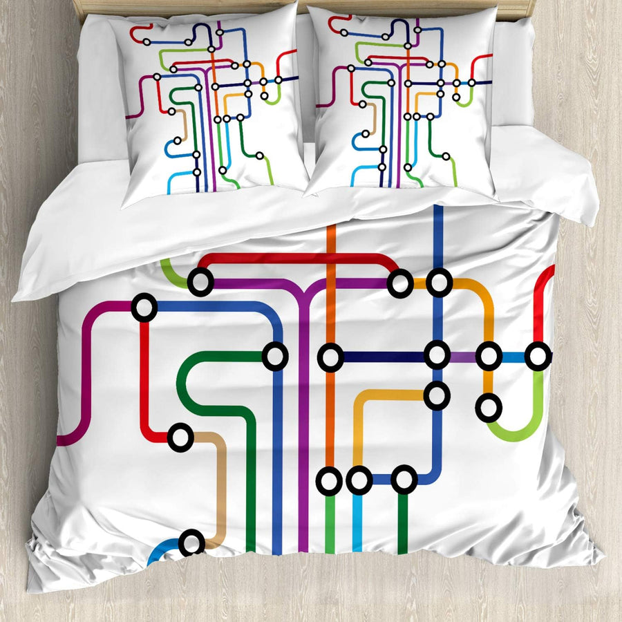 ABAKUHAUS Karte Bettbezugs Set Für Doppelbetten, Abstrakte Bunte U-Bahn, Milbensicher Allergiker gee
