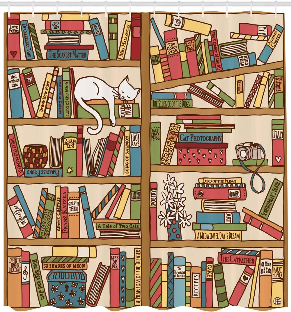 ABAKUHAUS Katze Duschvorhang, Nerd Bohem Katzen-Kätzchen, Wasser Blickdicht inkl.12 Ringe Langhaltig
