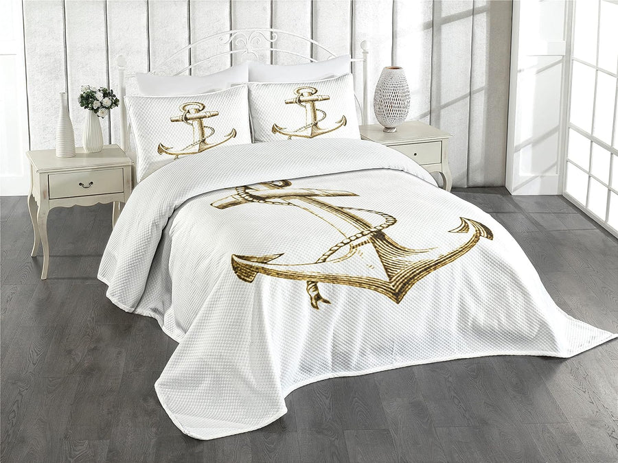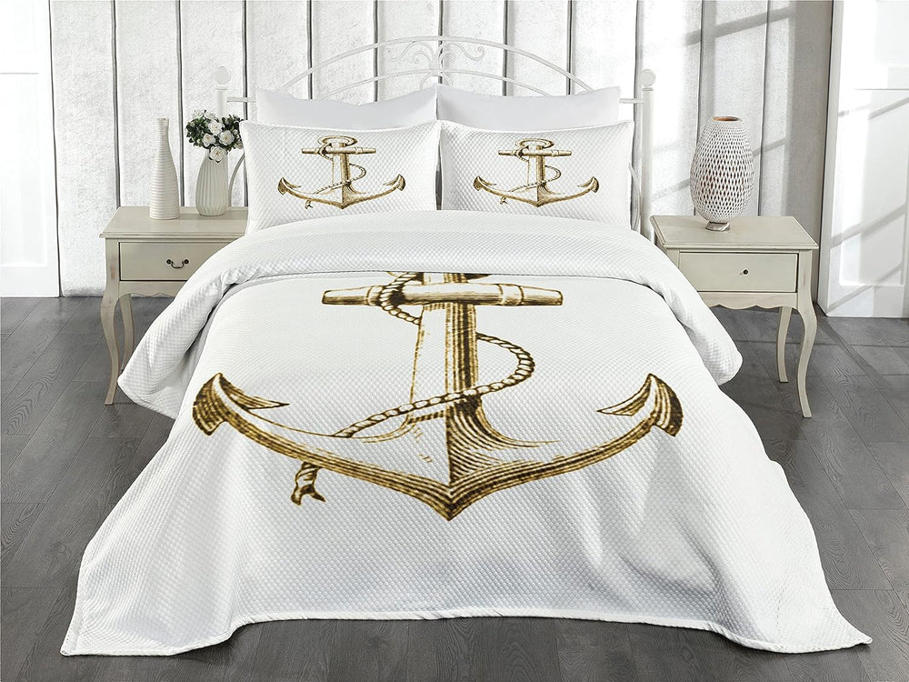 ABAKUHAUS Nautisch Tagesdecke Set, Nautical Symbol Voyage, Set mit Kissenbezügen Klare Farben, für D