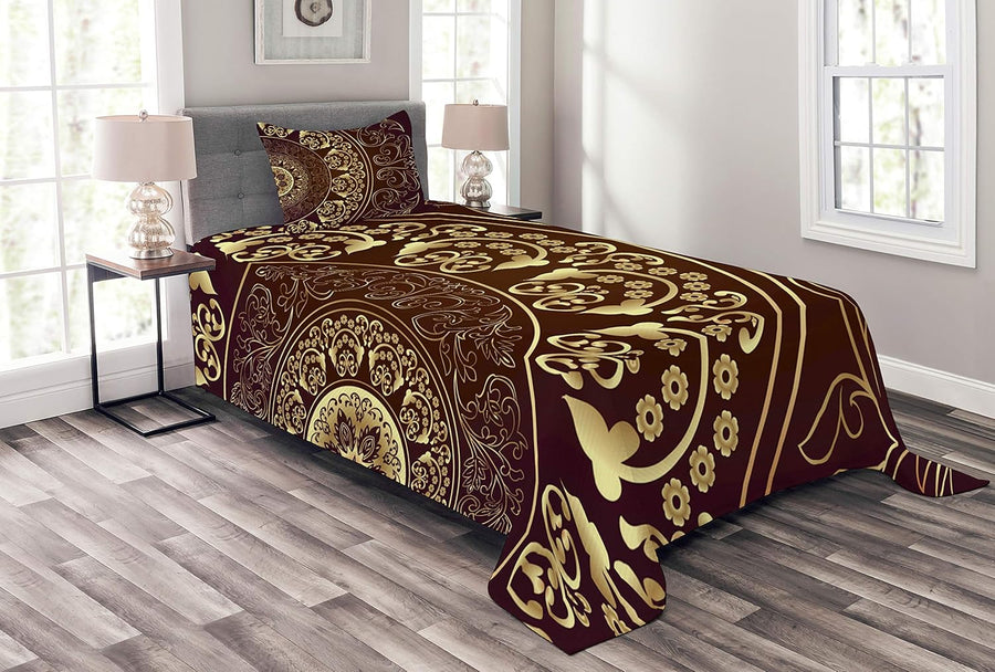 ABAKUHAUS Mandala Tagesdecke Set, Vintage Ethnische Asian, Set mit Kissenbezug Sommerdecke, für Einz