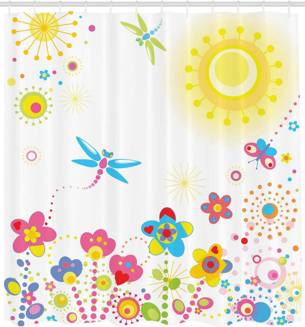 ABAKUHAUS Libelle Duschvorhang, Löwenzahn-Glück, Stoffliches Gewebe Badezimmerdekorationsset mit Hak