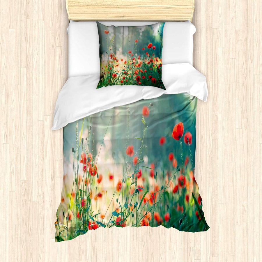 ABAKUHAUS Natur Bettbezug Set für Einzelbetten, Wild Red Mohnfeld, Milbensicher Allergiker geeignet