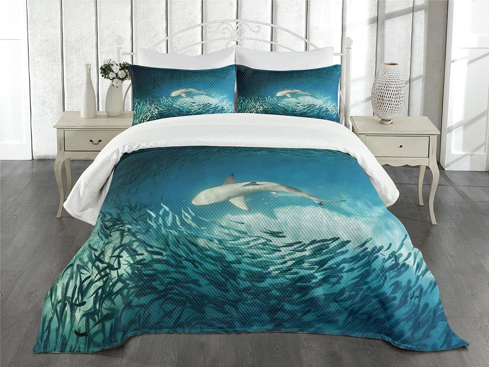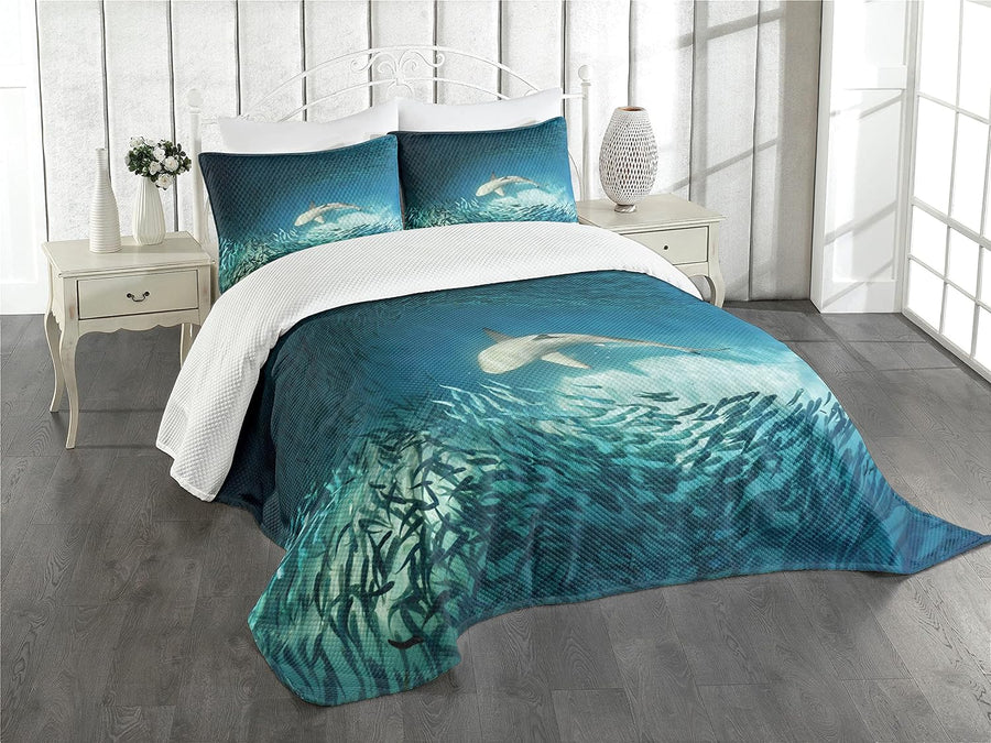 ABAKUHAUS Meerestiere Tagesdecke Set, Tiere Teal Wildlife, Set mit Kissenbezügen farbfester Digitald