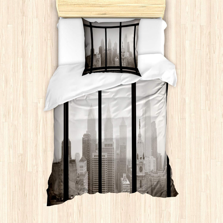 ABAKUHAUS Landschaft Bettbezug Set für Einzelbetten, Philadelphia Stadt-Dach, Milbensicher Allergike