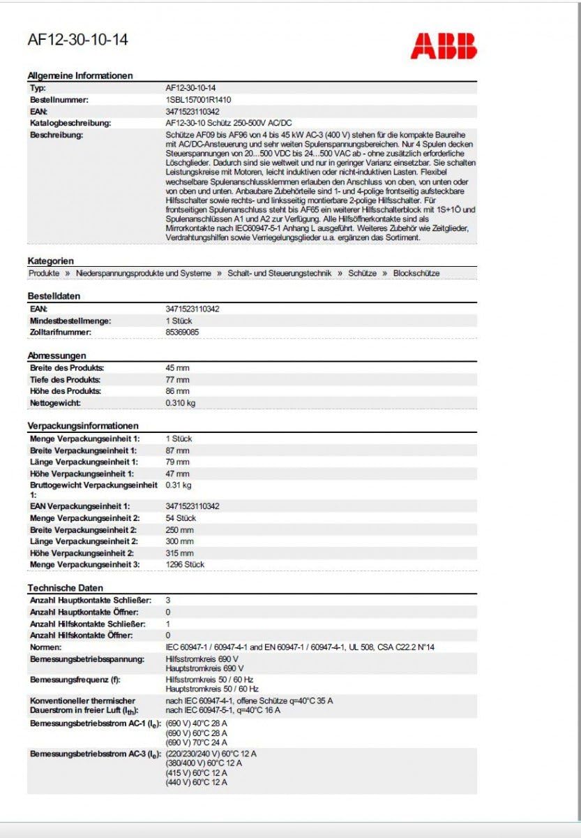abb-entrelec a-frctlp – AUX AF12 – 30 – 10 Schütz 3-polig 250 – 500 V AC/AC CONTI