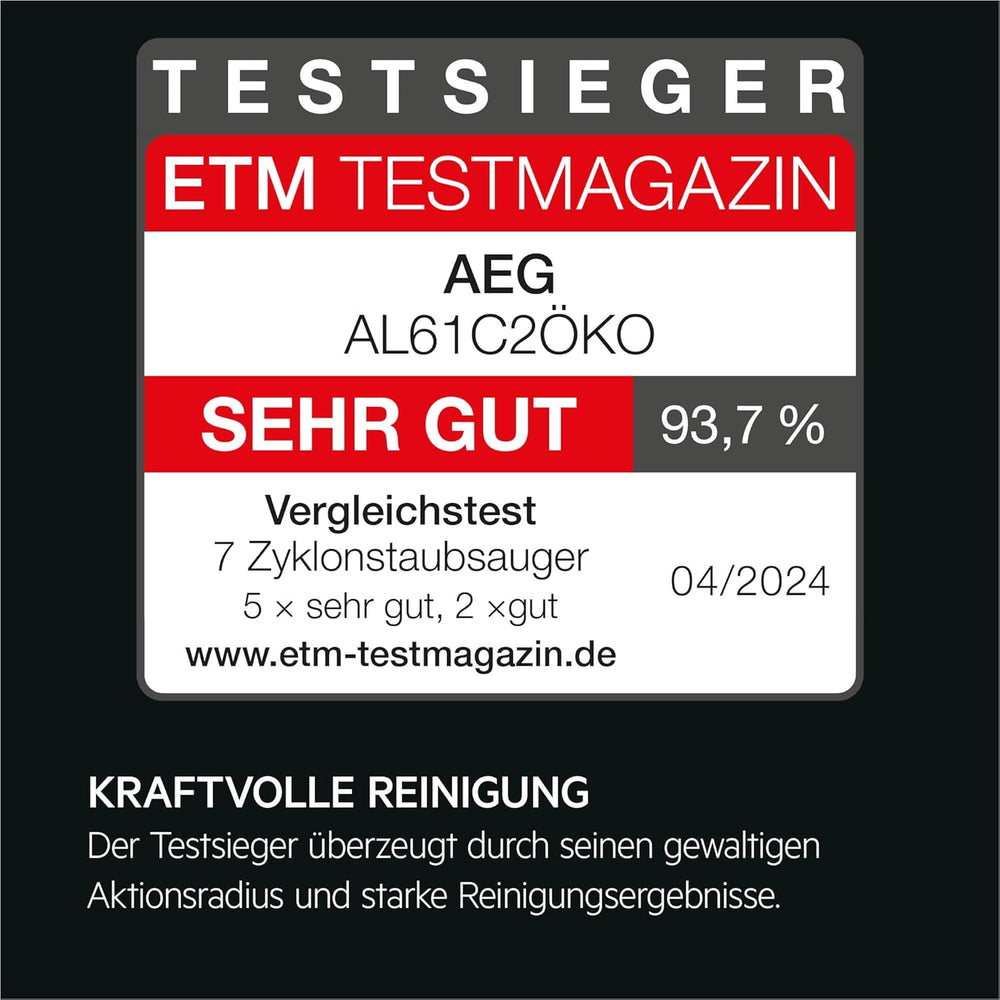 AEG CLEAN 6000 ÖKO AL61C2ÖKO Staubsauger beutellos / ETM Testsieger (SEHR GUT) / 60 % Recyclingmater