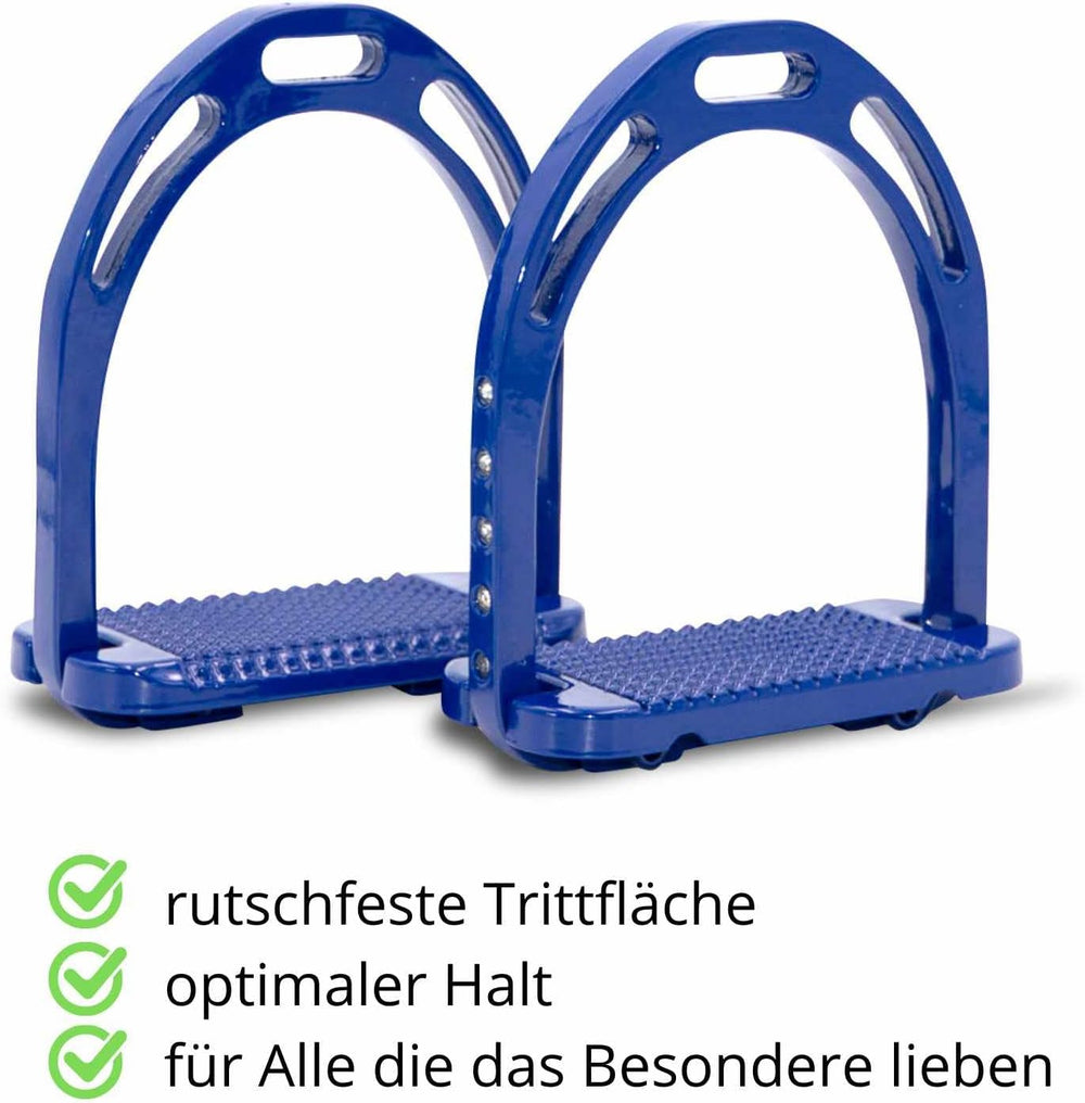 AMKA Steigbügel aus Aluminium mit Strass Steinen, extra leicht, breite Trittfläche blau
