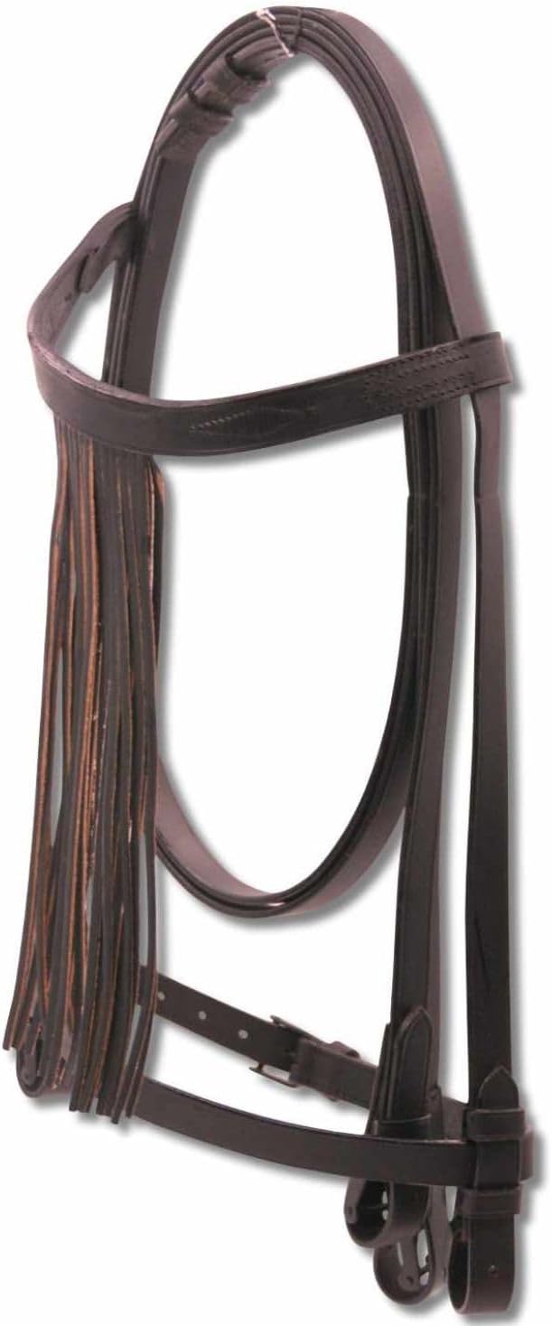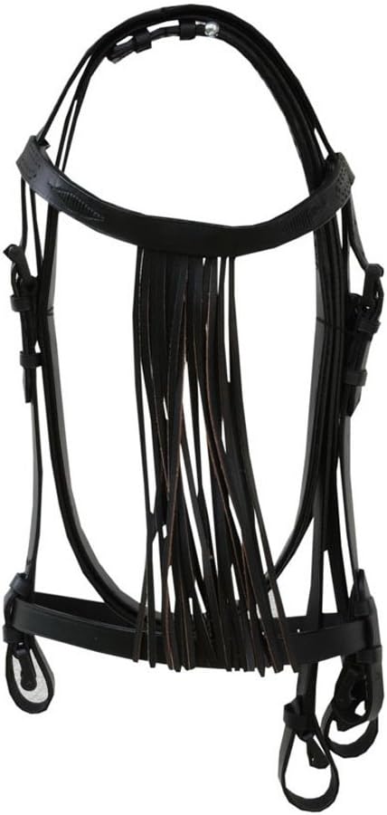 AMKA Spanische Trense mit Leder Fransenstirnband und Lederzügel Vaquero Zaum 005/105 schwarz, schwar