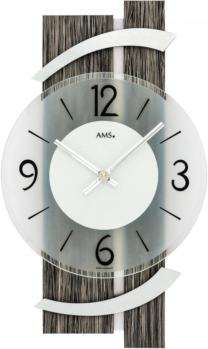 Wanduhr Holz Gehäuse Alu Auflage AMS 9547