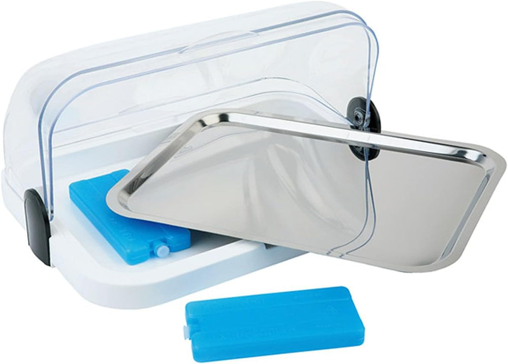 APS Buffetvitrine „Doppeldecker“ – 2 beidseitig aufklappbare, 2 Edelstahl-Tabletts, 4 Kühl-Akkus, Sc