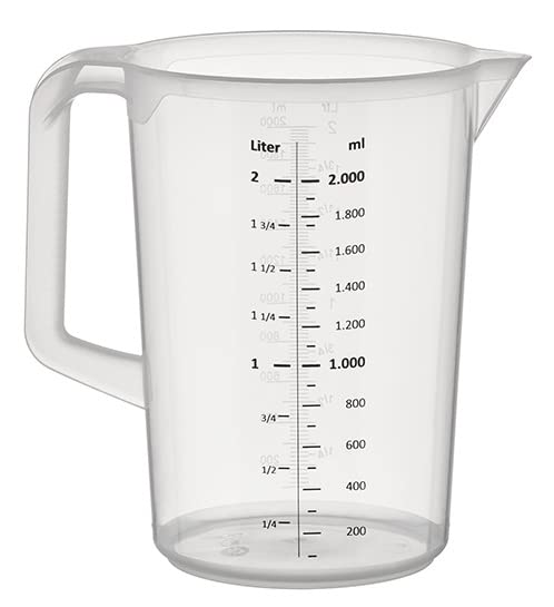 APS Messbecher 2 Liter, Ø 15,5 x H: 21 cm, 1- und ml-Liter- Einteilung, spülmaschinengeeignet & Fack