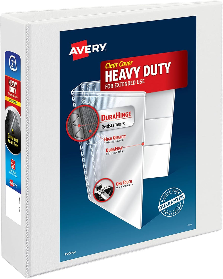 Avery Robustes 3-Ringbuch, 5,1 cm, schräge Ringe, für 21,6 x 27,9 cm Papier, 1 weisser Ordner (05504