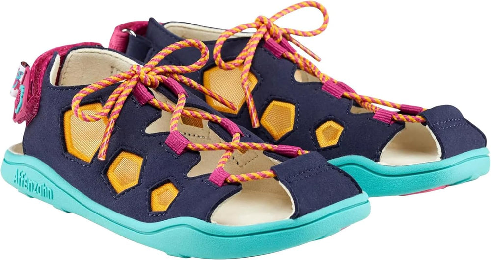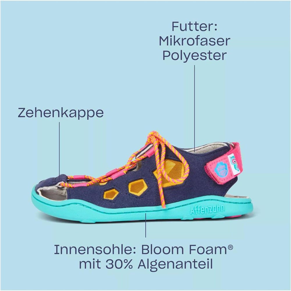 Affenzahn Sandale Vegan Free schnürbar mit Klettverschluss und Zehenkappe Grösse 21-32 30 EU Eule Bl