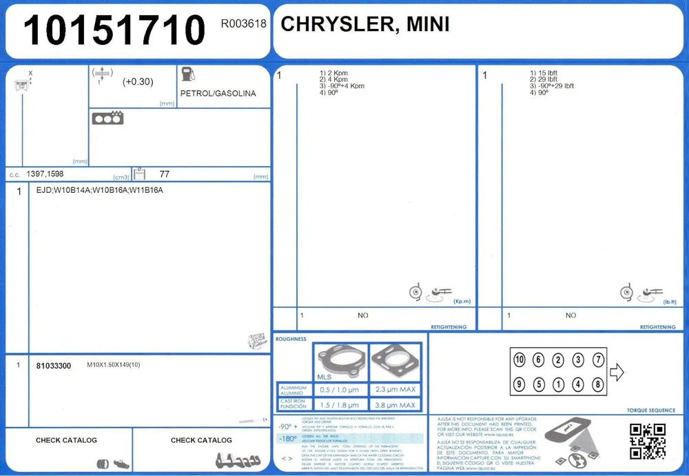 AJUSA 51070800 Dichtungsvollsatz, Motor