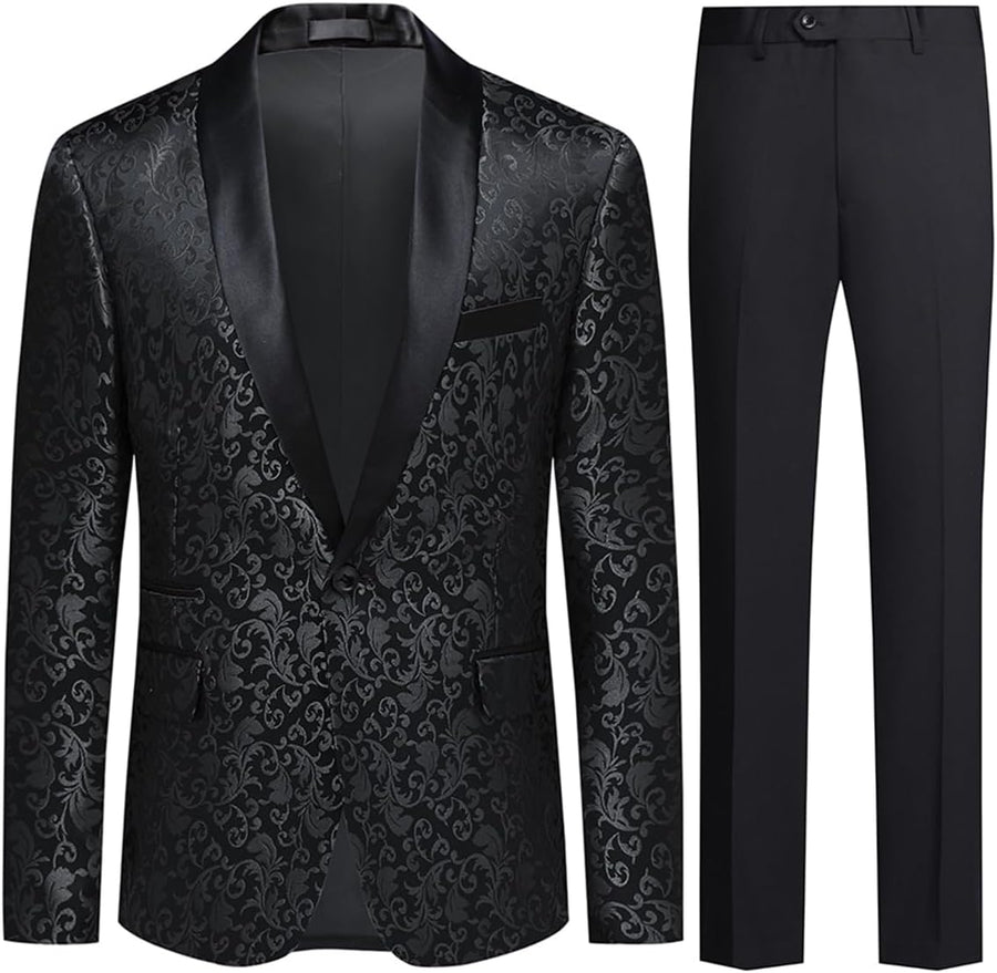 Allthemen Herren Jacquard Smoking Anzug Slim Fit 2 Teilig Anzüge für Hochzeit Party Abschluss 3XL Sc