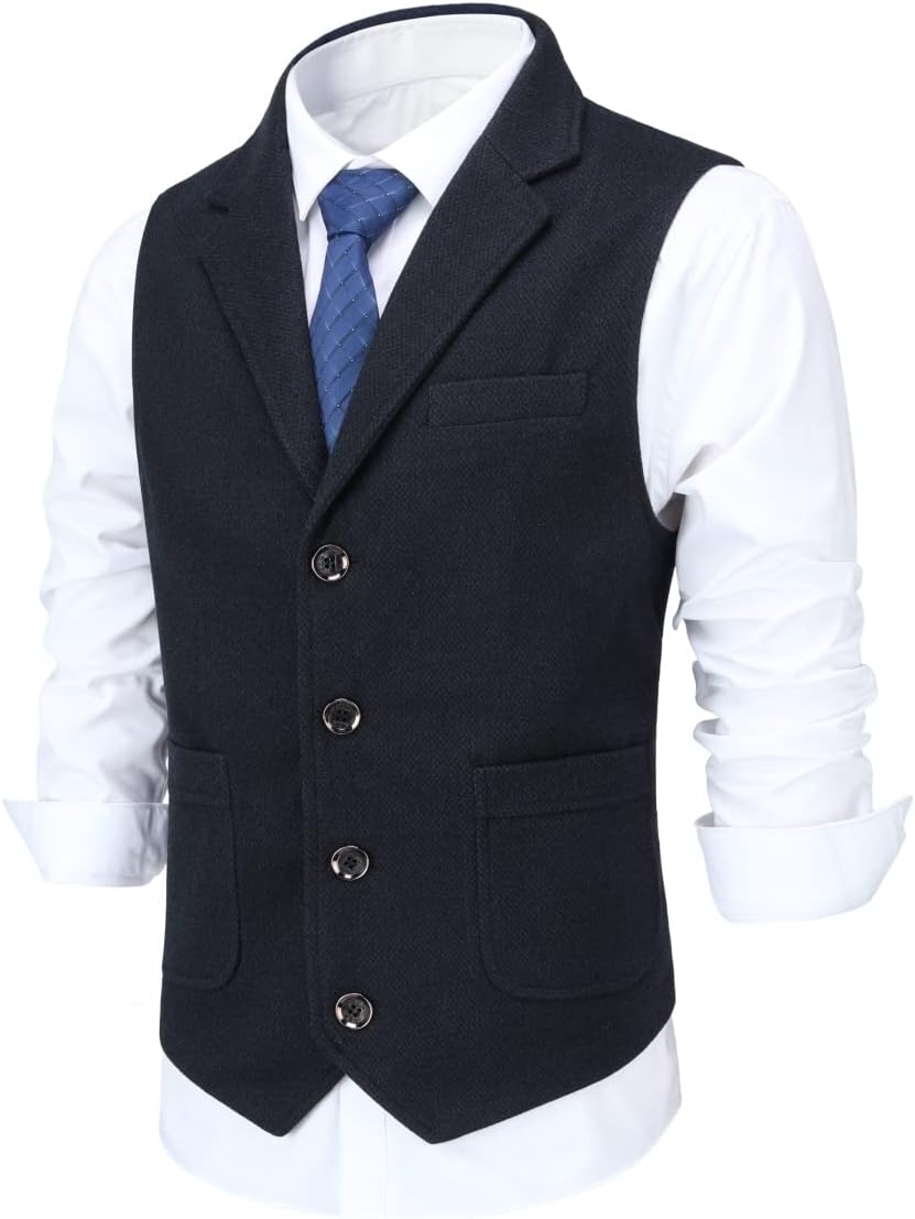 Allthemen Herren Weste Revers Tweed Wolle Anzugweste Formale Regular Fit Herrenweste Retro Business