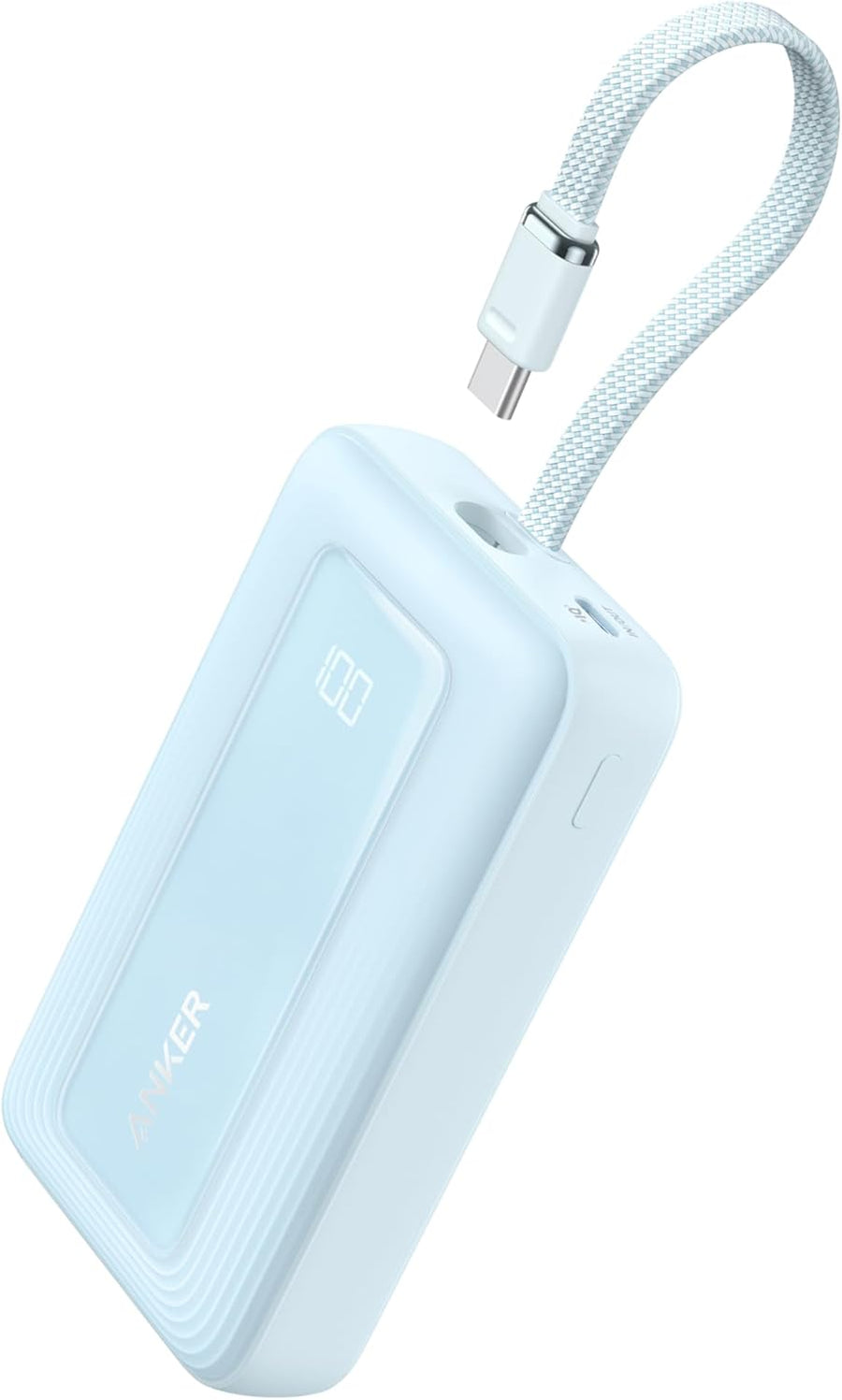 Anker Powerbank 20.000mAh 30W mit integriertem USB-C Kabel, High-Speed portables Ladegerät, 1 USB-C,