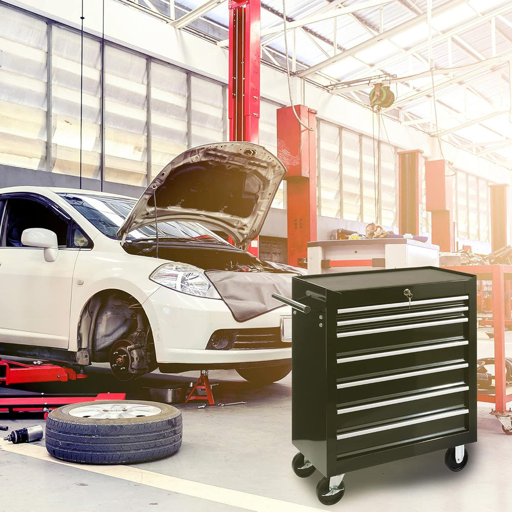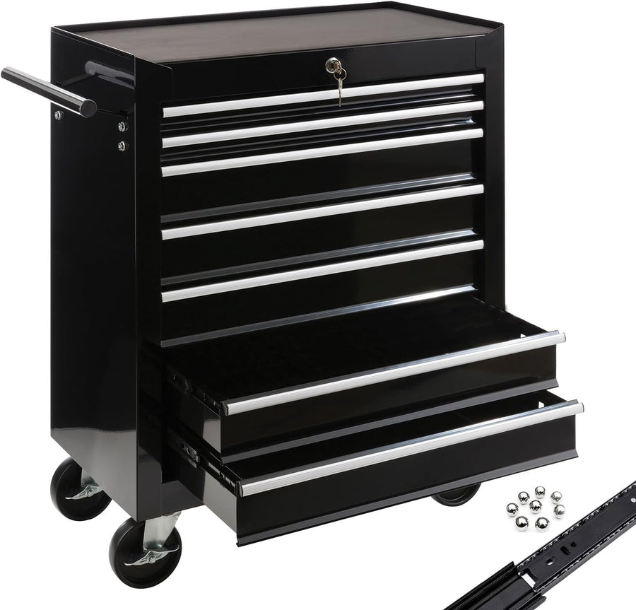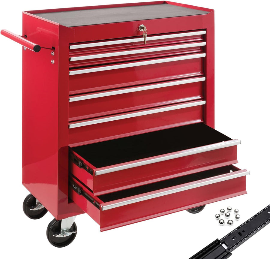 Arebos Werkstattwagen 7 Fächer | zentral abschliessbar | inkl. Antirutschmatten | kugelgelagerte Sch