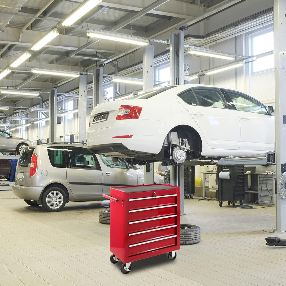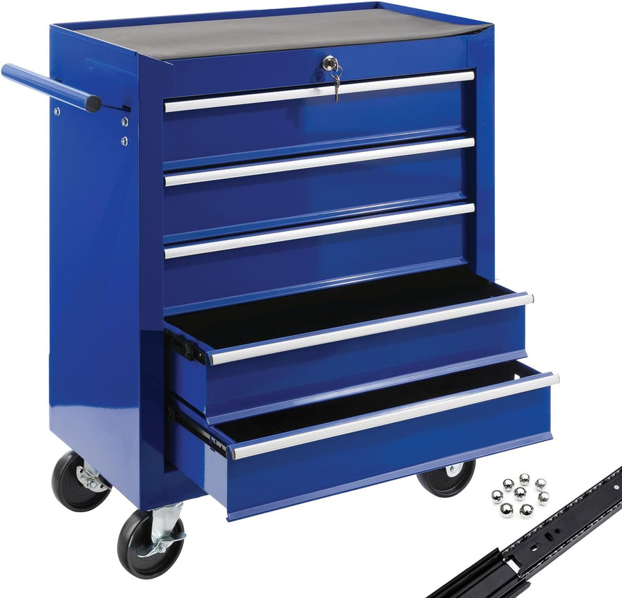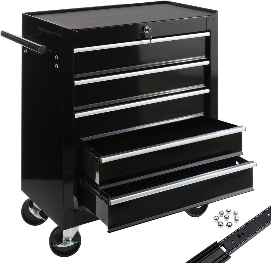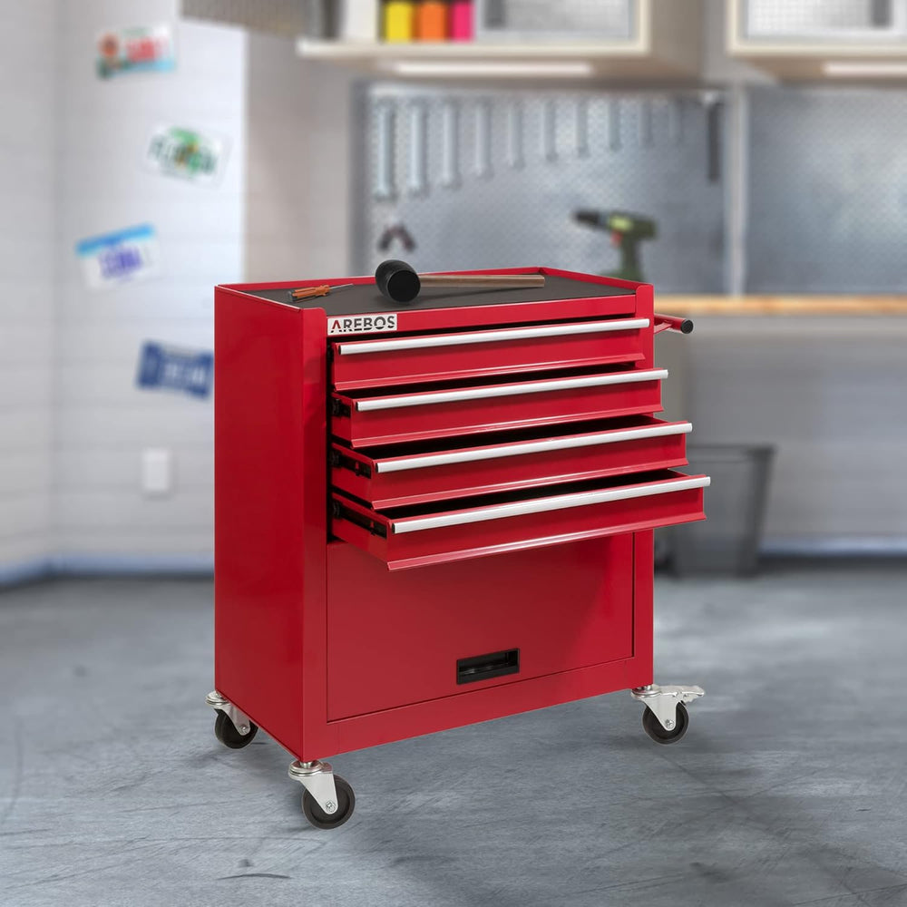 Arebos Werkstattwagen 5 Fächer | zentral abschliessbar | inkl. Antirutschmatten | kugelgelagerte Sch