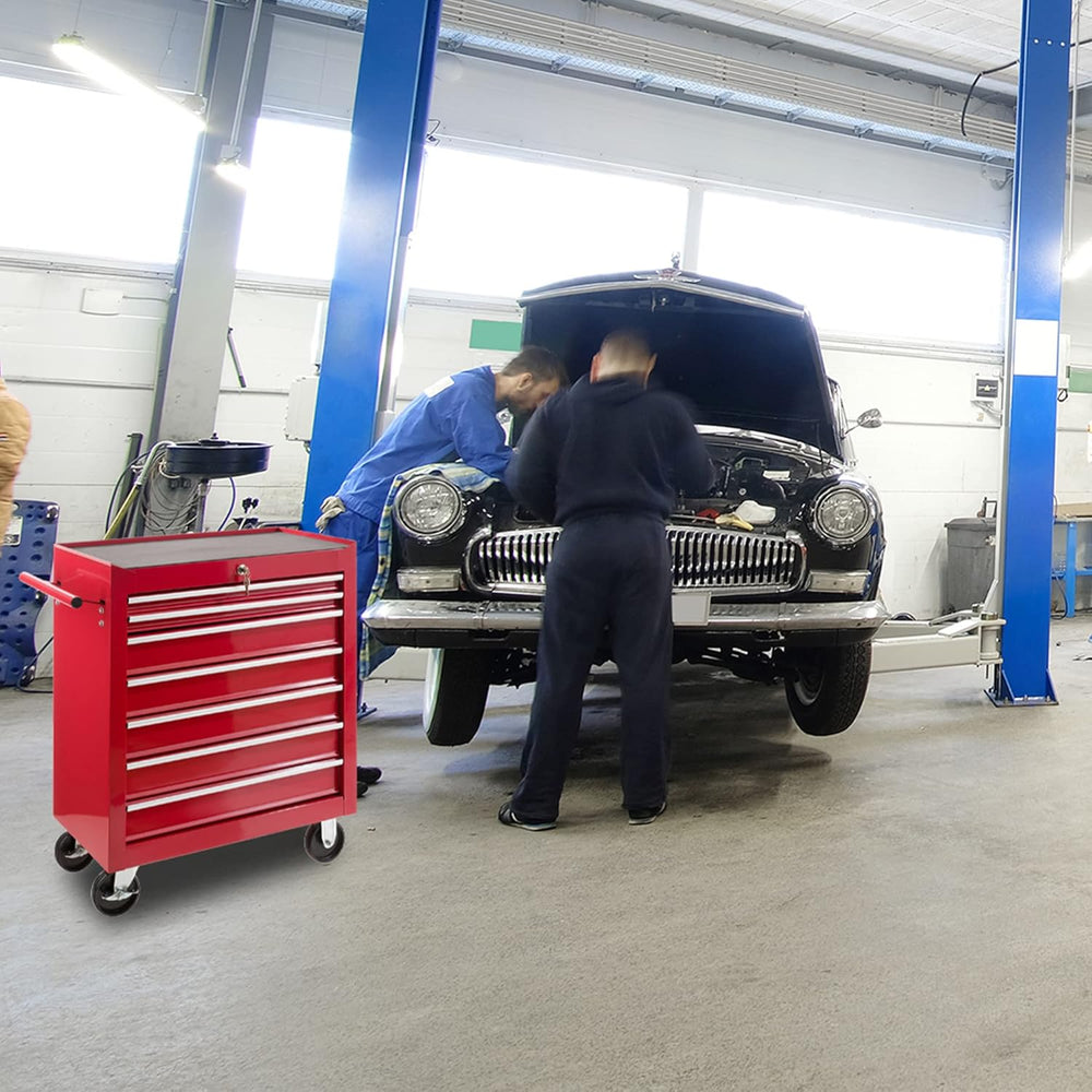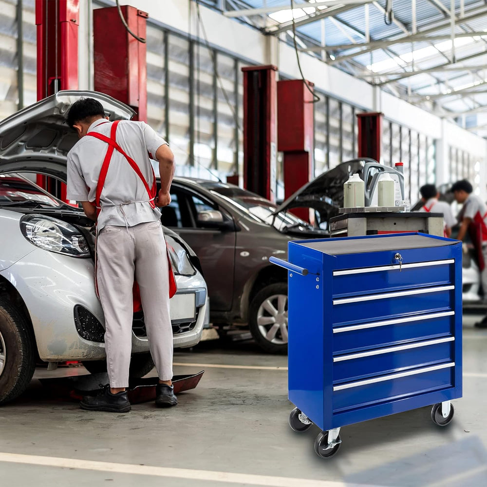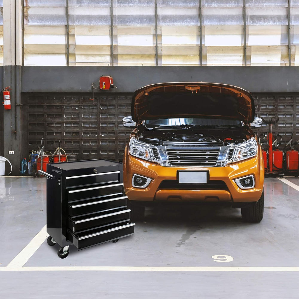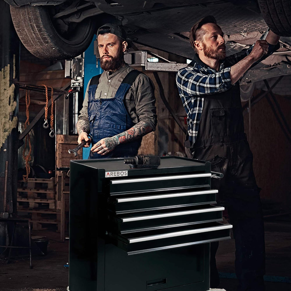 Arebos Werkstattwagen 5 Fächer | zentral abschliessbar | inkl. Antirutschmatten | kugelgelagerte Sch