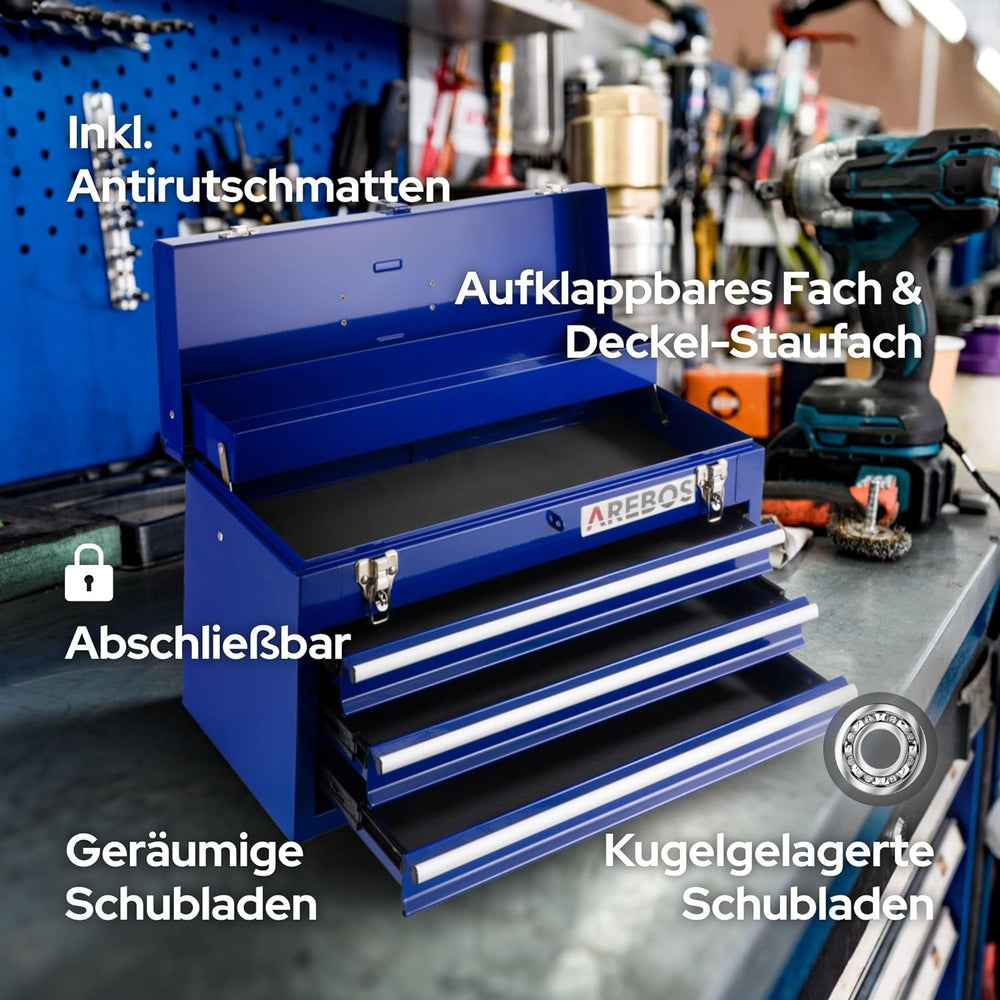 Arebos Werkzeugkoffer mit 3 Schubladen & 2 Ablagefächern | inkl. Tragegriff & Schnappverschlüssen |