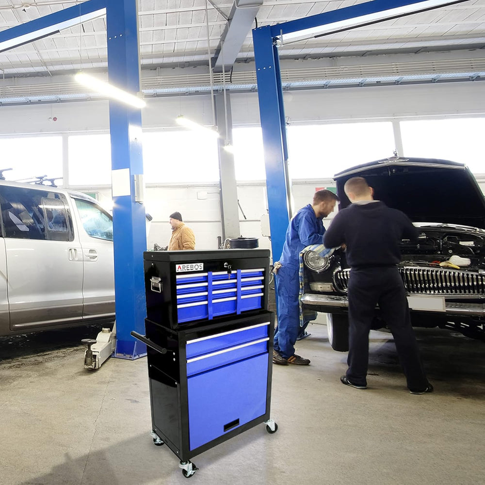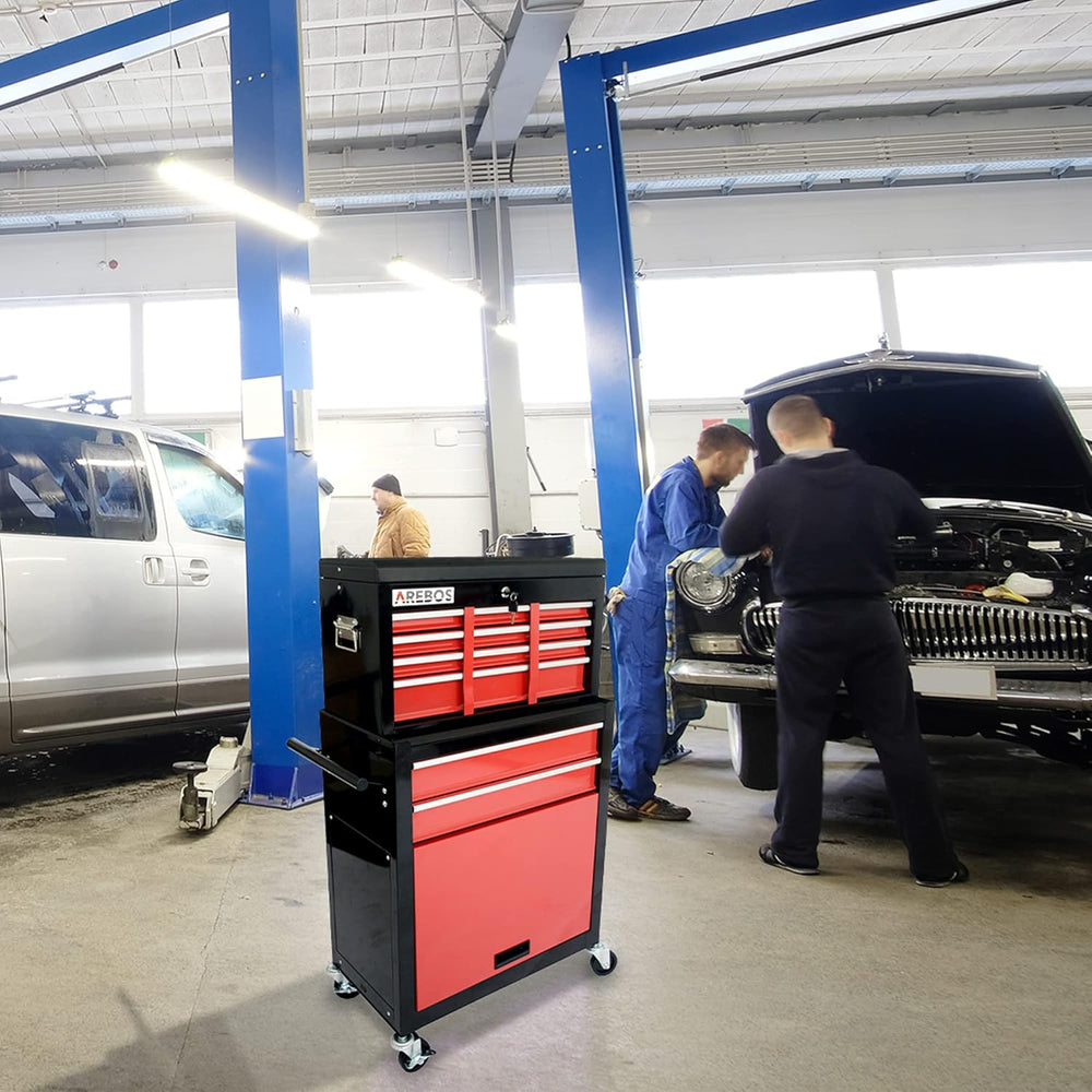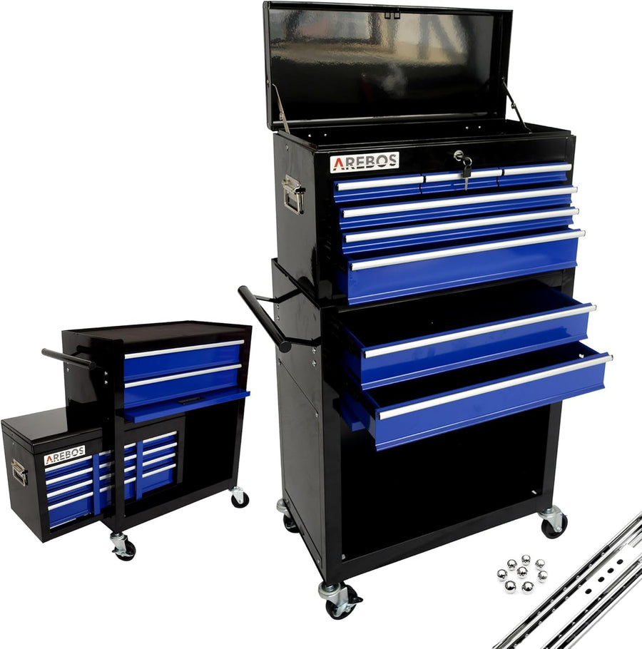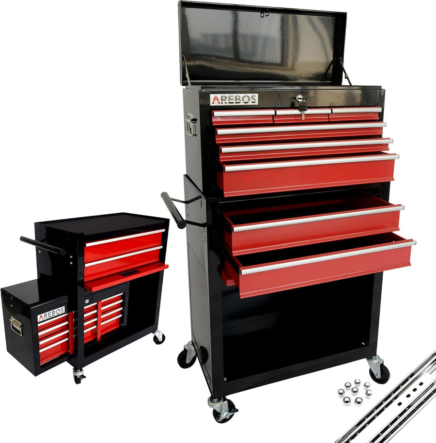 Arebos Werkstattwagen 9 Fächer | inkl. Antirutschmatten | Kofferaufsatz mobil & herausnehmbar | zent
