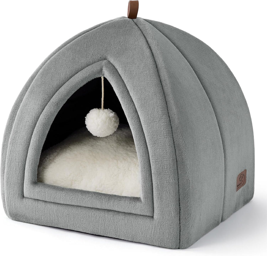 BEDSURE Katzenhöhle Katzen Grau - Faltbare Katzenbett mit waschbaren Kissen, Katzenzelt für Kätzchen