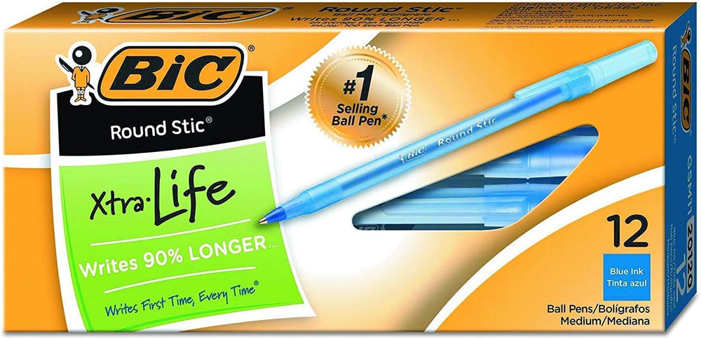 Ultra Round Stic Grip Ballpoint Stick Pen, Blue Ink, Medium, Dozen