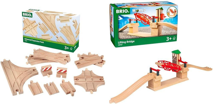 BRIO World 33307 Schienen- und Weichensortiment 11 Weichen aus Buchenholz & World 33757 Hebebrücke E
