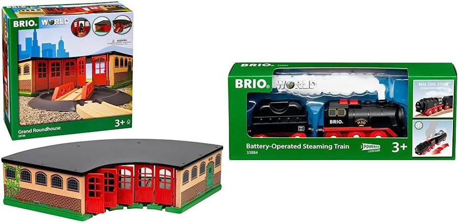 BRIO Eisenbahn Grosser Ringlokschuppen Mit Drehscheibe & World 33884 Batterie-Dampflok mit Wassertan