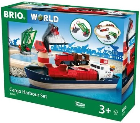 BRIO World 33061 Container Hafen Set - Mit Hafenbrücke und beweglichem Kran zum Beladen des Frachtsc